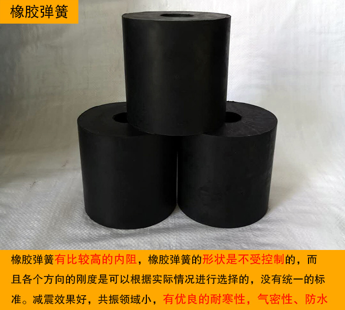 優(yōu)勢(shì):橡膠彈簧有比較高的內(nèi)阻,這個(gè)內(nèi)阻對(duì)于突然沖擊或者是高頻振動(dòng)的吸收以及隔音都具有很好的作用,橡膠彈簧的形狀是不受控制的,而且各個(gè)方向的剛度是可以根據(jù)實(shí)際情況進(jìn)行選擇的,沒有統(tǒng)一的標(biāo)準(zhǔn)。減震效果好,共振領(lǐng)域小,有優(yōu)良的耐寒性,氣密性、防水性、電絕緣性。大漢橡膠彈簧種類眾多,還可按需定做。