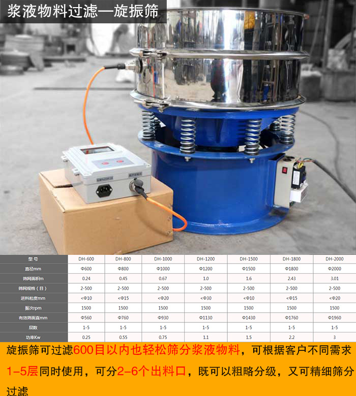 旋振篩振幅機(jī)物料運(yùn)行軌跡可根據(jù)生產(chǎn)工藝需要任意調(diào)節(jié),無(wú)論物料的干與濕,精細(xì)與粗糙,重與輕,只要在500目或0.028m范圍內(nèi)均可篩分,即使物料是液體的或漿狀的只要在600目以內(nèi)也輕松篩分,可根據(jù)客戶不同需求1-5層同時(shí)使用,可分2-6個(gè)出料口,既可以粗略分級(jí),又可精細(xì)篩分過(guò)濾。