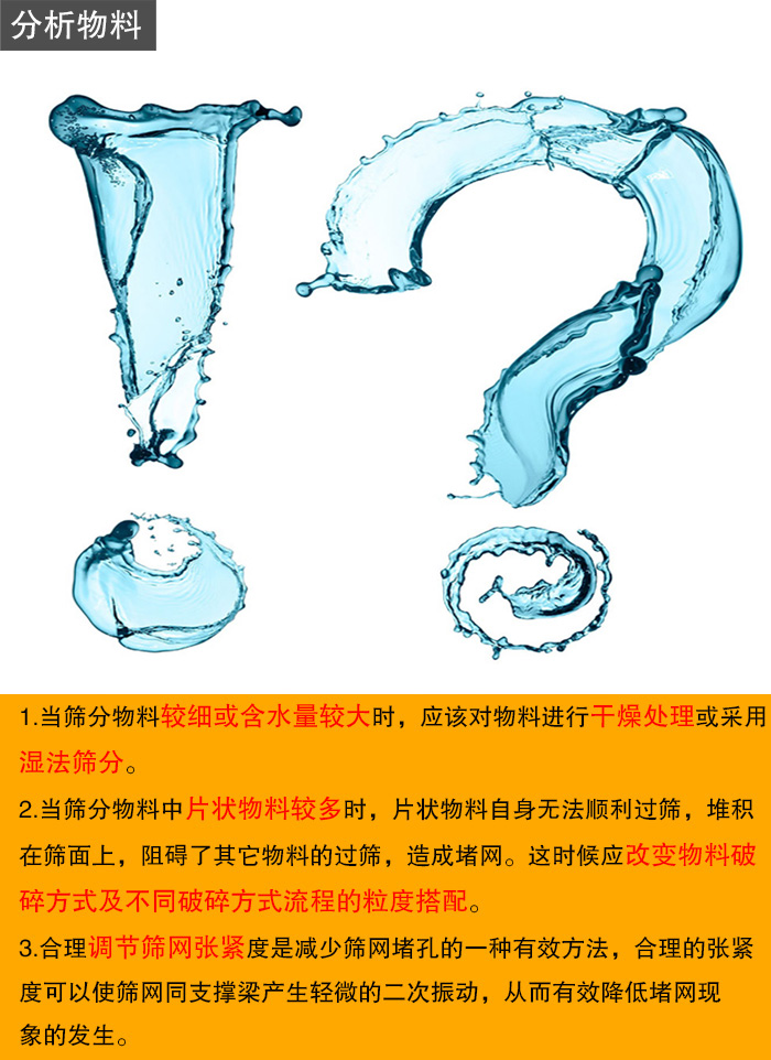 1.當(dāng)篩分物料較細(xì)或含水量較大時(shí),應(yīng)該對(duì)物料進(jìn)行干燥處理或采用濕法篩分。