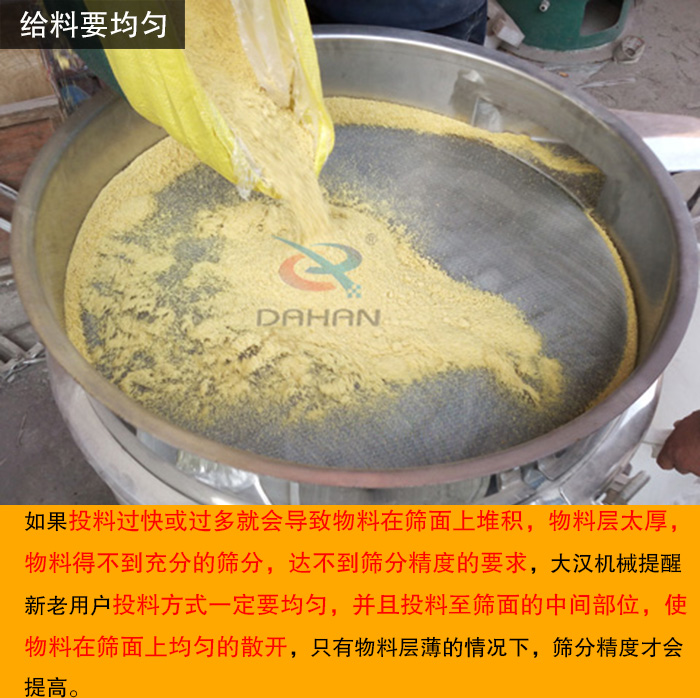 要想獲得較好的篩分效果,用戶還需在給料上多加注意,通常要求要均勻給料。如果投料過(guò)快或過(guò)多就會(huì)導(dǎo)致物料在篩面上堆積,物料層太厚,物料得不到充分的篩分,達(dá)不到篩分精度的要求,大漢機(jī)械提醒新老用戶投料方式一定要均勻,并且投料至篩面的中間部位,使物料在篩面上均勻的散開(kāi),只有物料層薄的情況下,篩分精度才會(huì)提高。