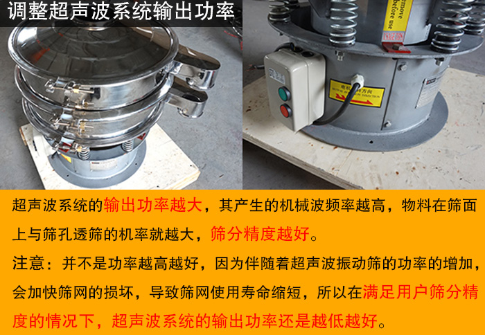 超聲波系統(tǒng)是超聲波振動(dòng)篩主要的部件,主要由超聲波振動(dòng)電源與超聲波換能器組成。一般而言,超聲波系統(tǒng)的輸出功率越大,其產(chǎn)生的機(jī)械波頻率越高,物料在篩面上與篩孔透篩的機(jī)率就越大,篩分精度越好。但并不是功率越高越好,因?yàn)榘殡S著超聲波振動(dòng)篩的功率的增加,會(huì)加快篩網(wǎng)的損壞,導(dǎo)致篩網(wǎng)使用壽命縮短,所以在滿足用戶篩分精度的情況下,超聲波系統(tǒng)的輸出功率還是越低越好。