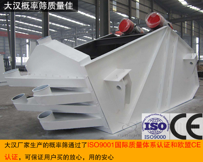 新鄉(xiāng)市是振動設(shè)備的研發(fā)基地,擁有先進成熟的生產(chǎn)工藝,而新鄉(xiāng)大漢振動機械有限公司作為憑借著獨特的地理位置優(yōu)勢,不斷吸取國內(nèi)外先進的工藝并結(jié)合市場要求,產(chǎn)品嚴格按照國家行業(yè)標準進行設(shè)計、制做,保證了產(chǎn)品的質(zhì)量,大漢廠家生產(chǎn)的概率篩通過了ISO9001國際質(zhì)量體系認證和歐盟CE認證,使用壽命長久,可保證用戶買的放心,用的安心。