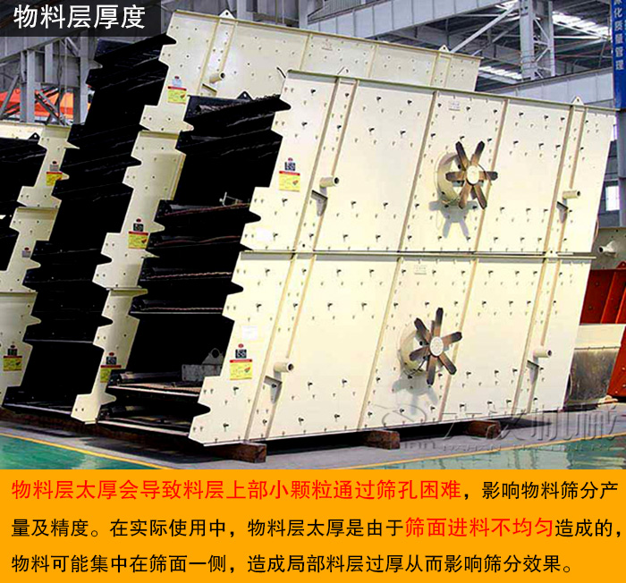 圓振動篩物料層太厚也是影響圓振動篩篩分效果的因素之一,物料層太厚會導致料層上部小顆粒通過篩孔困難,影響物料篩分產量及精度。在實際使用中,物料層太厚是由于篩面進料不均勻造成的,物料可能集中在篩面一側,造成局部料層過厚從而影響篩分效果。