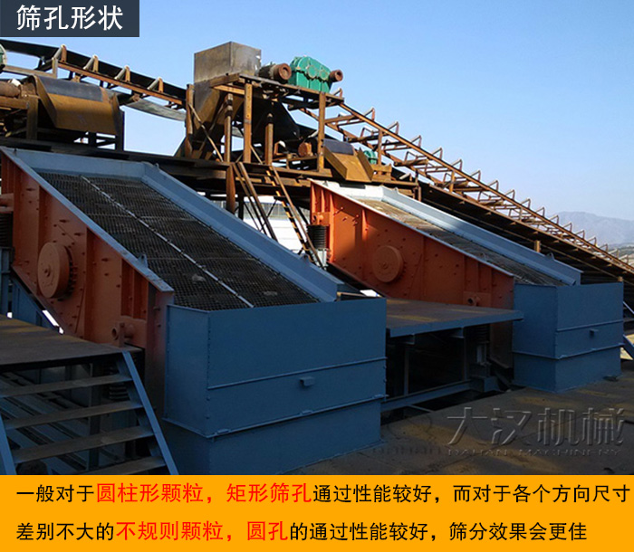 一般對于圓柱形顆粒,矩形篩孔通過性能較好,而對于各個方向尺寸差別不大的不規(guī)則顆粒,圓孔的通過性能較好,篩分效果會更佳。