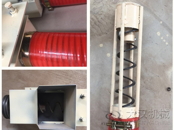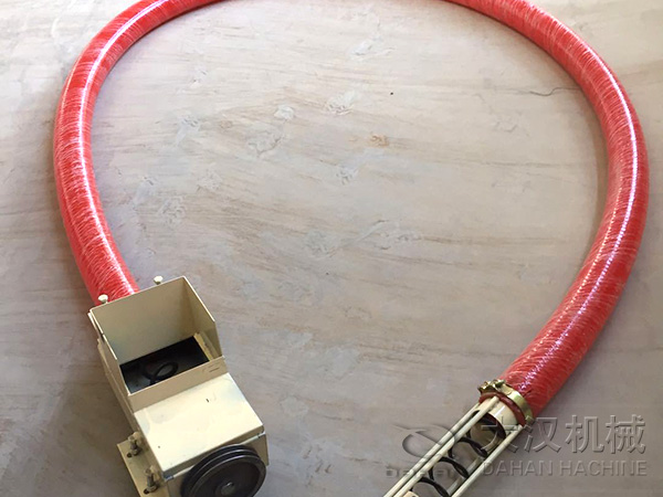 吸糧機的工作原理是無軸螺旋提升,啟動電機后,電機帶動螺旋彈簧旋轉(zhuǎn),在進料口的糧食就會在旋轉(zhuǎn)彈簧的作用下,沿著彈簧的旋轉(zhuǎn)方向上升,到達出料口時,由于重力作用,自動卸糧。