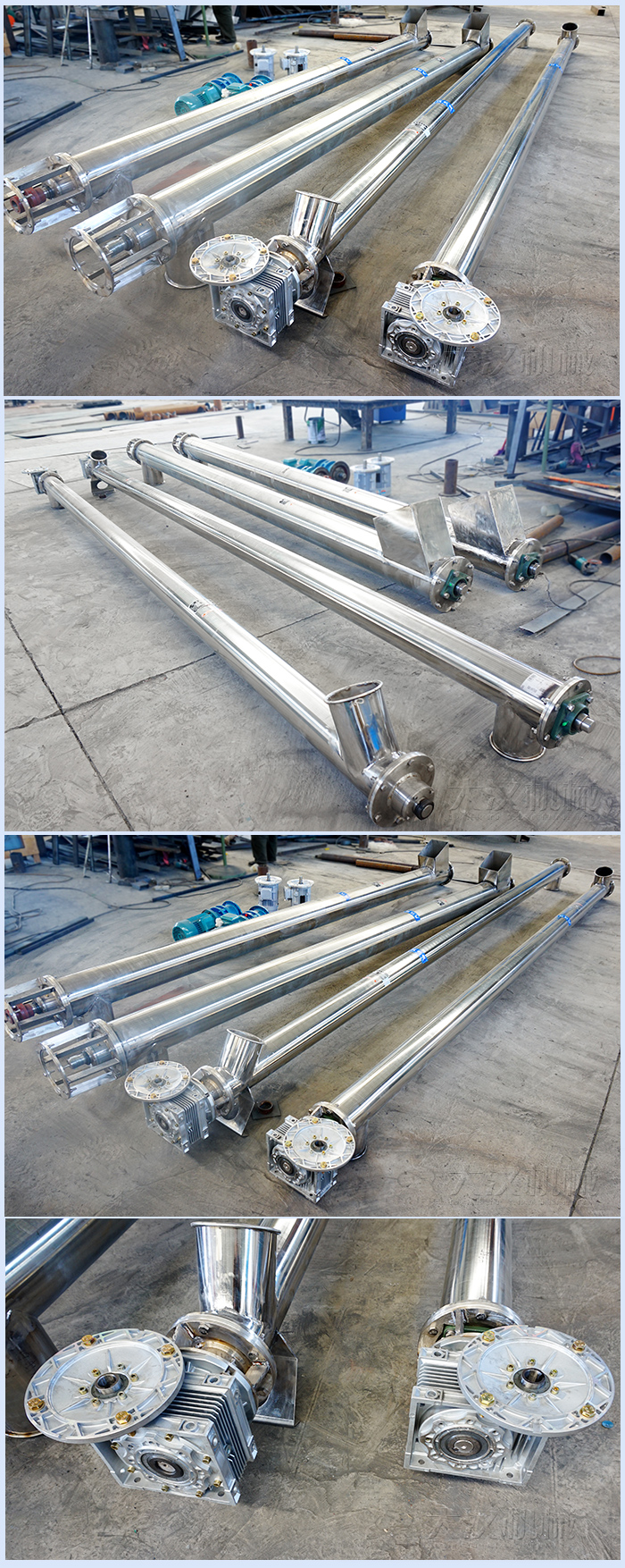不銹鋼螺旋輸送機除電機、軸承、機架外其余為不銹鋼制成,從輸送物料位移方向的角度劃分,螺旋輸送機分為水平式螺旋輸送機和垂直式螺旋輸送機兩大類型,根據(jù)輸送物料的難易程度可以采用有軸和無軸設(shè)計,可以按照輸送現(xiàn)場要求設(shè)計為移動式不銹鋼螺旋輸送機,適用于食品、藥品、化工、塑料等行業(yè)的粉粒狀物料的輸送。