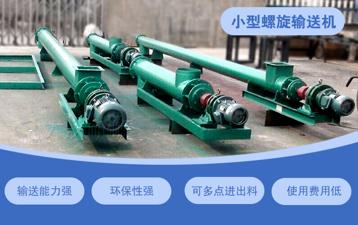 小型螺旋輸送機(jī)適用于建材、化工、電力、冶金、煤炭、糧食等行業(yè),適用于水平或傾斜輸送粉狀、粒狀和小塊狀物料,如煤、灰、渣、水泥、糧食等。