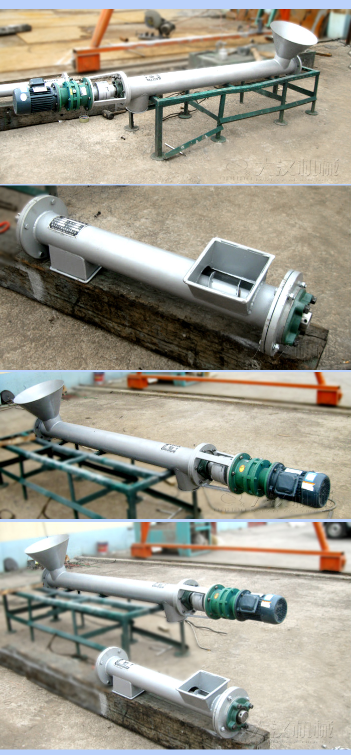 小型螺旋輸送機(jī)由驅(qū)動裝置、頭節(jié)、中間節(jié)、尾節(jié)、頭尾軸承、進(jìn)出料裝置等幾部分組成,小型螺旋輸送機(jī)是利用旋轉(zhuǎn)的螺旋將被輸送的物料沿固定的機(jī)殼內(nèi)推移而進(jìn)行輸送工作,頭部及尾部軸承移至殼體外,吊軸承采用滑動軸承設(shè)有防塵密封裝置,軸瓦一般采用粉末冶金,輸送水泥采用毛氈軸瓦,吊軸和螺旋軸采用滑塊連接。