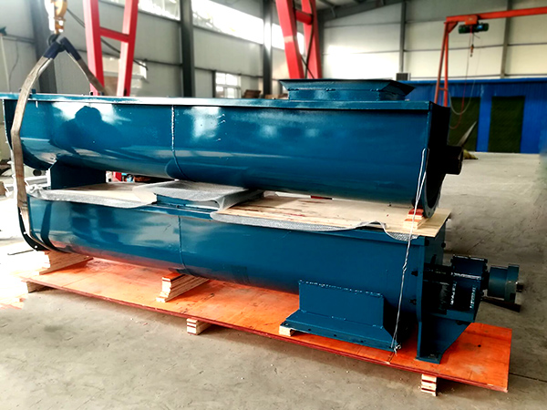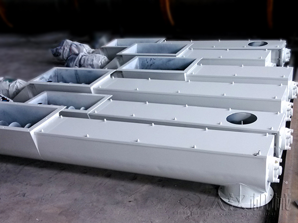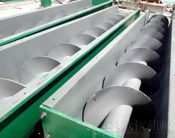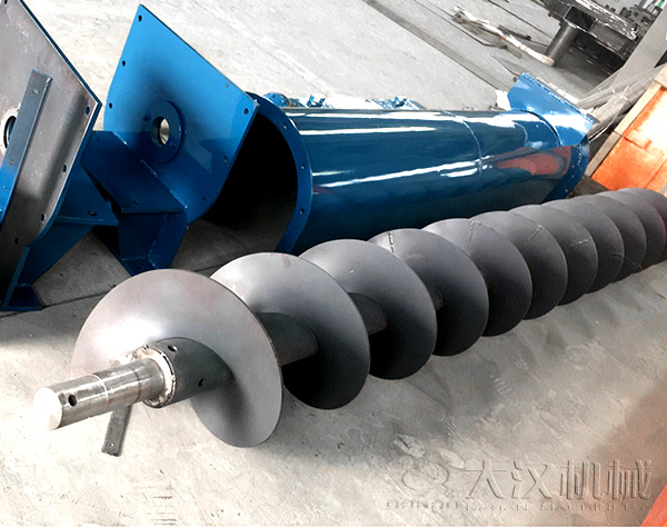 物料從進(jìn)料口加入,當(dāng)轉(zhuǎn)軸轉(zhuǎn)動(dòng)時(shí),旋轉(zhuǎn)的螺旋葉片將物料推移而進(jìn)行輸送,但由于物料本身的重力和料槽對(duì)物料的摩擦力的緣故,才不與螺旋葉片一起旋轉(zhuǎn),在由螺旋軸的拖動(dòng)下,物料往出料口方向移動(dòng),將物料輸送到料倉或料池中。